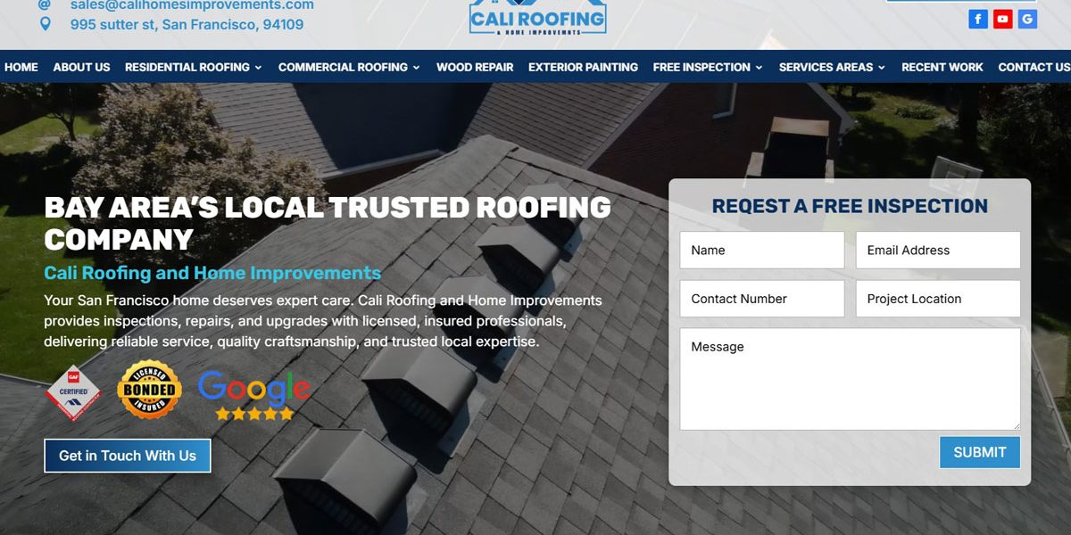 We developed this website for Cali Roofing and Home Improvements. They have been proudly serving homeowners and businesses in San Francisco since 1991. Their team specializes in residential and commercial roofing, offering services ranging from new roof installations and replacements to emergency roof repairs.