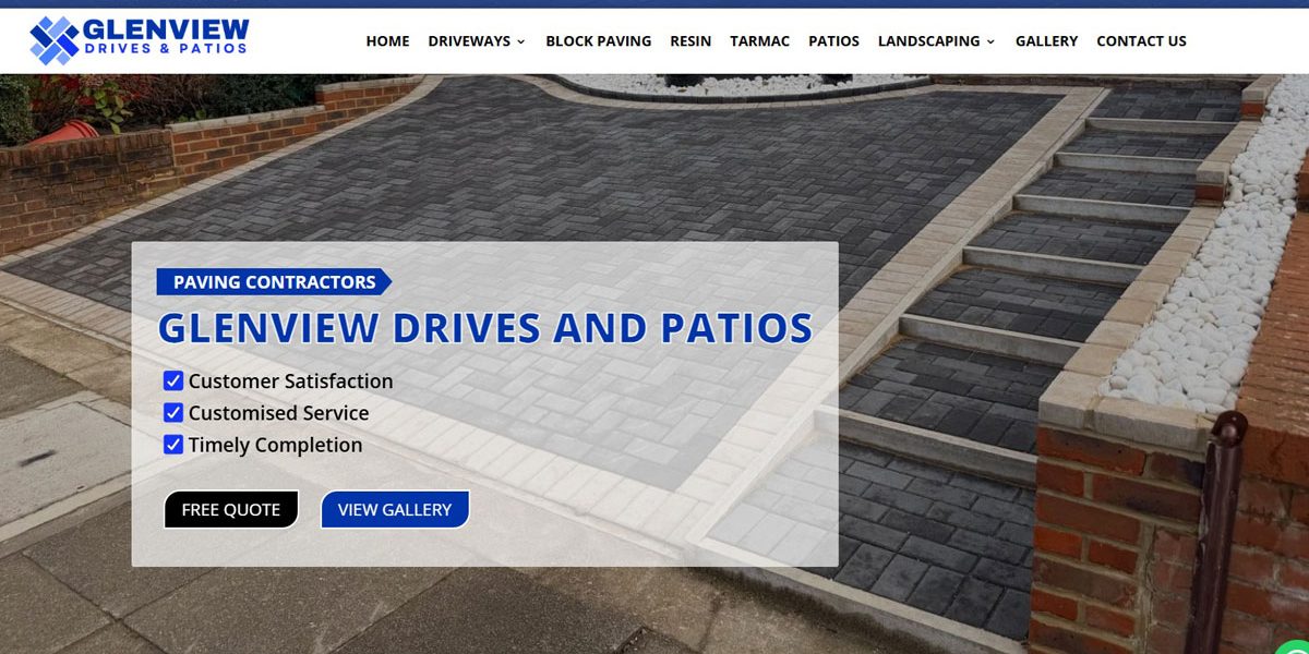 We developed this website for Glenview Drives and Patios. They offer a complete range of driveway, patio, and landscaping services, all designed to transform and enhance your outdoor space.