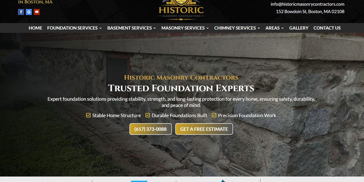 We developed this website for Historic Masonry Contractors. They provide complete masonry, foundation, basement, and chimney services throughout Boston, MA, and the surrounding communities. From foundation repair and waterproofing to patios, walkways, chimney rebuilding, and tuckpointing, their skilled team delivers durable, high-quality workmanship designed to protect and enhance your property for decades.